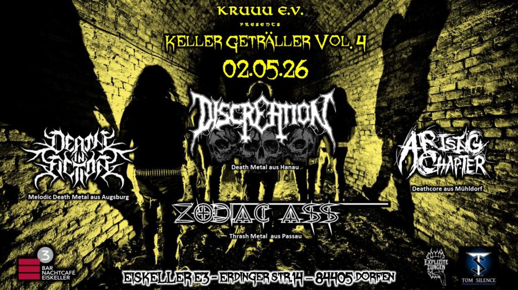 Wir spielen am 2. Mai 2026 in der E3 Bar/Eiskeller in Dorfen (Kreis Erding). Tickets sind hier erhältlich.