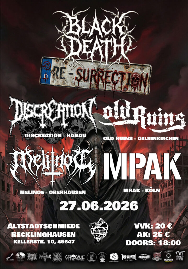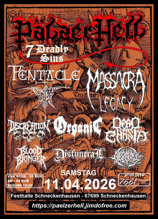 mit Blood Bringer, Abrasive, Disfuneral, Discreation, Dead Chasm, Organic, Massacra Legacy, Pentacle