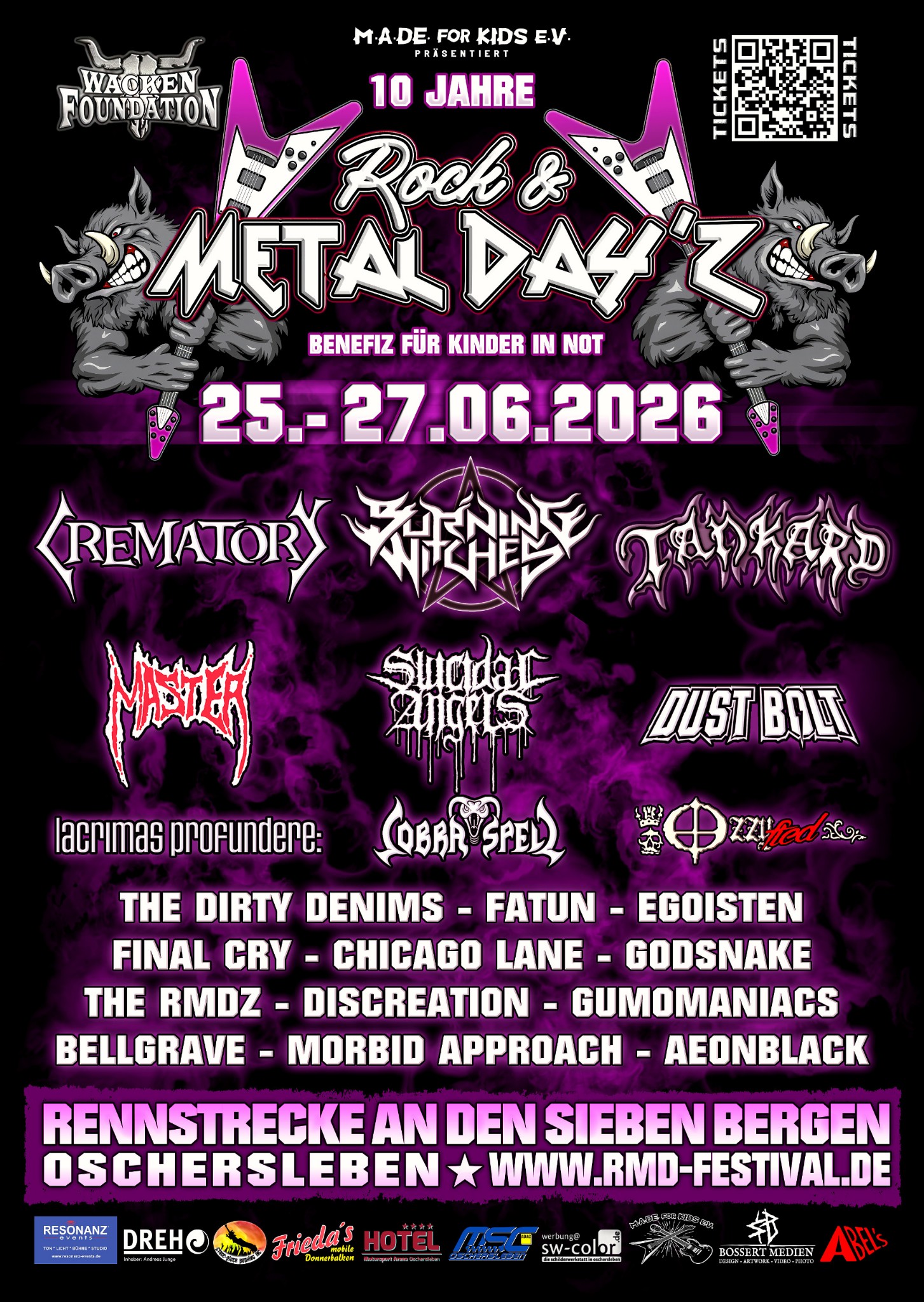 mit Crematory, Burning Witches, Tankard, Master, Suicidal Angels, Dust Bolt, Lacrimas Profundere, Cobra Spell uvm.